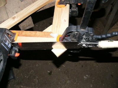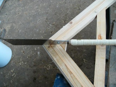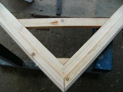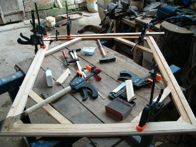 Die Ecken des Rahmens habe ich an den Schnittpunkten verstärkt und alles beim Verleimen mit stahlstiften fixiert. Die überstehenden Kanten mußten passgenau entfernt werden.