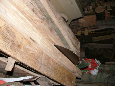 Hieraus säge ich Kanteln mittels einer an der Säge angebrachten Skala. ( Die dunklen Striche am linken mittleren Bildrand. )